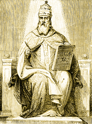 Saint Damasus was born in Rome at the beginning of the fourth century. His father, a widower, had received Holy Orders there and served as parish priest in the church of St. Laurence. Damasus was archdeacon of the Roman Church in 355, when the Pope, Saint Liberius, was banished to Berda; he followed him into exile, but afterwards returned to Rome. On the death of Saint Liberius in 366, our Saint was chosen to succeed him, at the age of sixty-two. A certain Ursinus, jealous of his election and desiring for himself that high office, had himself proclaimed pope by his followers, inciting a revolt against Damasus in Rome, in which 137 persons died. The holy Pope did not choose to resort to armed defense, but the Emperor Valentinian, to defend him, drove the usurper from Rome for a time. Later he returned, and finding accomplices for his evil intentions, accused the holy Pontiff of adultery. Saint Damasus took only such action as was becoming to the common father of the faithful; he assembled a synod of forty-four bishops, in which he justified himself so well that the calumniators were excommunicated and banished.