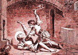 Leovigild, Arian King of the Visigoths, had two sons, Hermenegild and Recared, who were reigning conjointly with him. All were Arians, but Hermenegild married a zealous Catholic, the daughter of Sigebert, King of France, and by her holy example was converted to the faith. His father, on hearing the news, denounced him as a traitor, and marched to seize his person. Hermenegild tried to rally the Catholics of Spain in his defense, but they were too weak to make any stand; and after a two years' fruitless struggle, Hermenegild surrendered on the assurance of a free pardon. Once he was safely in the royal camp, the king had him loaded with fetters and cast into a foul dungeon at Seville.