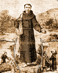 Pendant treize ans il fut curé dans son diocèse; jamais il ne se servait de cheval; il allait toujours à pied et sans chaussures, d'où lui est venu le nom de Déchaussé. Sa vie pauvre lui eût permis de mettre de l'argent en réserve, mais les indigents recevaient tout son superflu et parfois même de son nécessaire. Le saint prêtre entra ensuite dans l'Ordre de Saint-François.