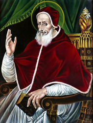 Pontefice del Dio vivo, tu sei stato sulla terra "il muro di bronzo, la colonna di ferro" (Ger 1,18) di cui parla il Profeta; e la tua indomabile costanza ha preservato dalla violenza e dalle insidie dei suoi numerosi nemici il gregge che ti era stato affidato. Ben lungi dal disperare, alla vista dei pericoli il tuo coraggio s'innalzava come una diga che si costruisce sempre più alta a misura che le acque dell'inondazione arrivano più minacciose. Per mezzo tuo gl'invadenti flutti dell'eresia si sono arrestati, l'invasione musulmana è stata respinta, e abbassato l'orgoglio della Mezzaluna. Il Signore ti fece l'onore di sceglierti per rivendicare la sua gloria ed essere il liberatore del popolo cristiano; ricevi, insieme al nostro atto di riconoscenza, l'omaggio delle nostre umili felicitazioni. Pure per tuo mezzo la Chiesa, che usciva da una terribile crisi, ritrovò la sua bellezza. La vera riforma, quella che si compie attraverso l'autorità, fu applicata senza debolezze dalle tue mani, altrettanto ferme che pure. Il culto divino, rinnovato dalla pubblicazione di libri Liturgici, ti deve il suo progresso, e la sua restaurazione; e nei sei anni del tuo breve ma laborioso pontificato, molte opere assai feconde furono compiute.
